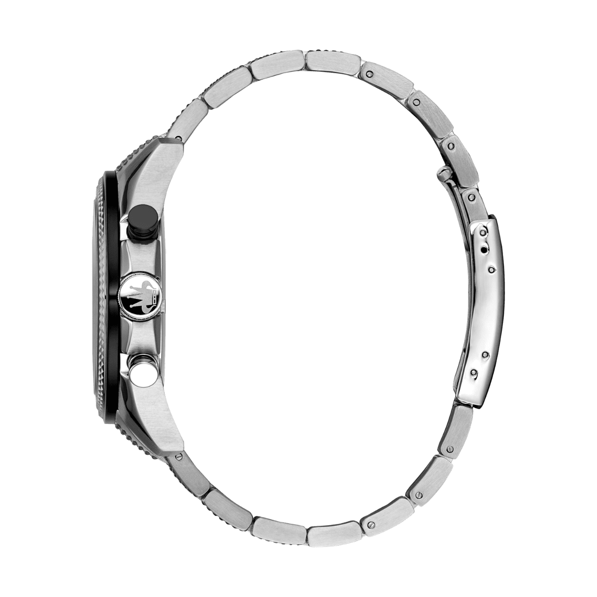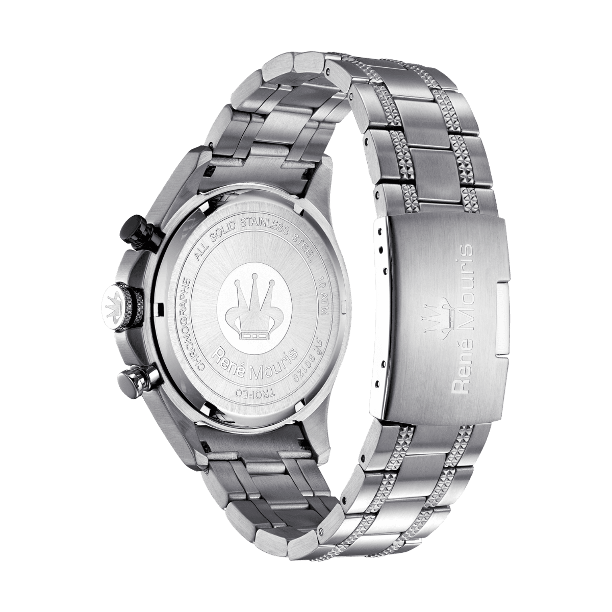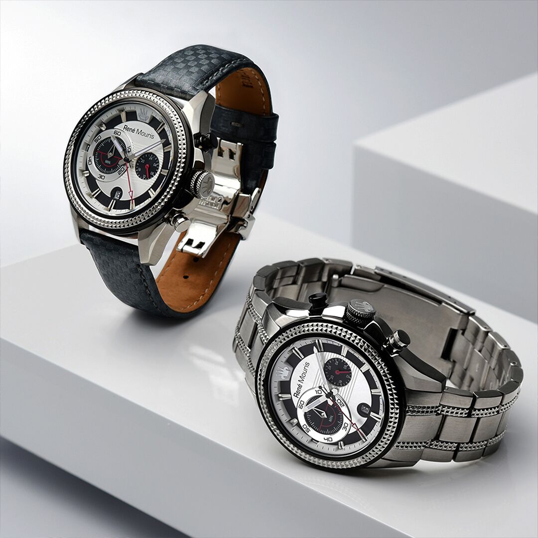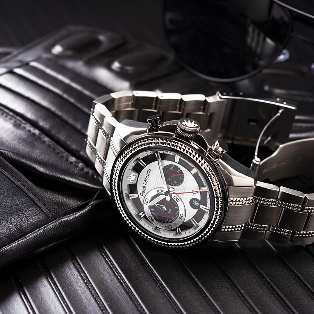 獎盃計時碼錶為速度而生。受汽車儀表板啟發的錶盤為這款功能性時計增添了運動氣息,專為挑剔的男士設計。圓形錶殼搭配滾花錶圈和相配的不銹鋼錶鏈,是日常佩戴的絕佳選擇。